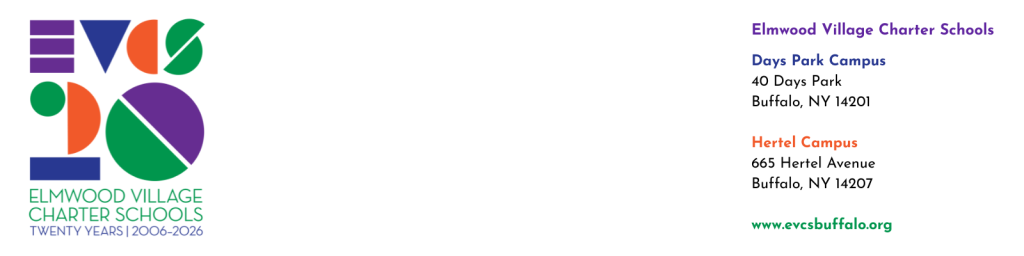 FOR IMMEDIATE RELEASE – September 17, 2025 Media Contact: Cheyenne Ketter – FranklinCommunications and Community Engagement Coordinator(716) 424-0555 ext. 2322cketter-franklin@elmwoodvillageschool.org CELEBRATING 20 YEARS OF EDUCATING BUFFALO YOUTH:Elmwood Village Charter Schools Commemorates 20th Anniversary (Buffalo, NY) – Elmwood Village Charter School (EVCS) is pleased to announce …